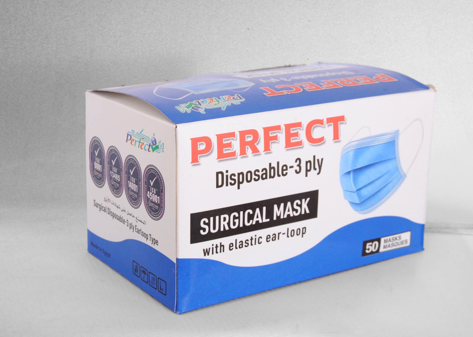 كمامه برفكت ثلاث طبقات50قطعه كل قطعه مغلفه quantity